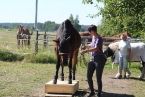Wir legen Wert darauf, dass die Hindernisse von Anfang an korrekt und mit Spaß für Pferd und Mensch angegangen werden – immer frei nach dem Motto: (fast) alles kann, nichts muss! Sämtliche Trainingseinheiten finden unter unserer Anleitung in Gruppen statt. So sorgen wir auch für die essentiell wichtigen kleinen Pausen für das Team, um sich Schritt für Schritt weiterentwickeln zu können.