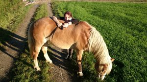 Ich bin Dana und bin Pferdefan, solange ich denken kann. Mit sechs Jahren durfte ich jede Woche einmal auf einen Ponyhof und habe angefangen, auf einem Pferd zu sitzen und mich um mein Pflegepony Lissy zu kümmern. Seither wurde das immer mehr und meine Eltern brachten mich jedes Wochenende auf einen Reiterhof in Sachsen, wo ich mit einigen anderen Verrückten versucht habe, soviel zu helfen wie ich kann um beim Pferd zu sein. Mein Traum war immer ein eigenes Pferd, am liebsten Carina, ein Schulpferd, um das ich mich gekümmert habe. Das war finanziell aber nie möglich. Mein Interesse galt aber nicht nur dem Reiten, gern wollte ich viel mehr machen. Das wurde in der damaligen Zeit aber eher belächelt und war im Schulbetrieb nicht möglich.